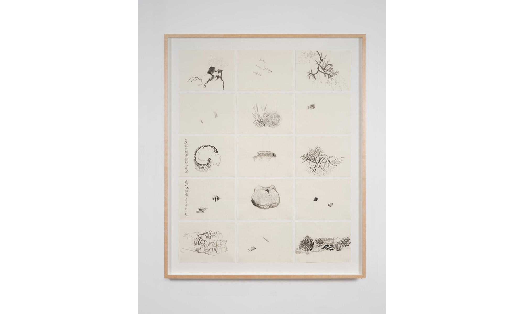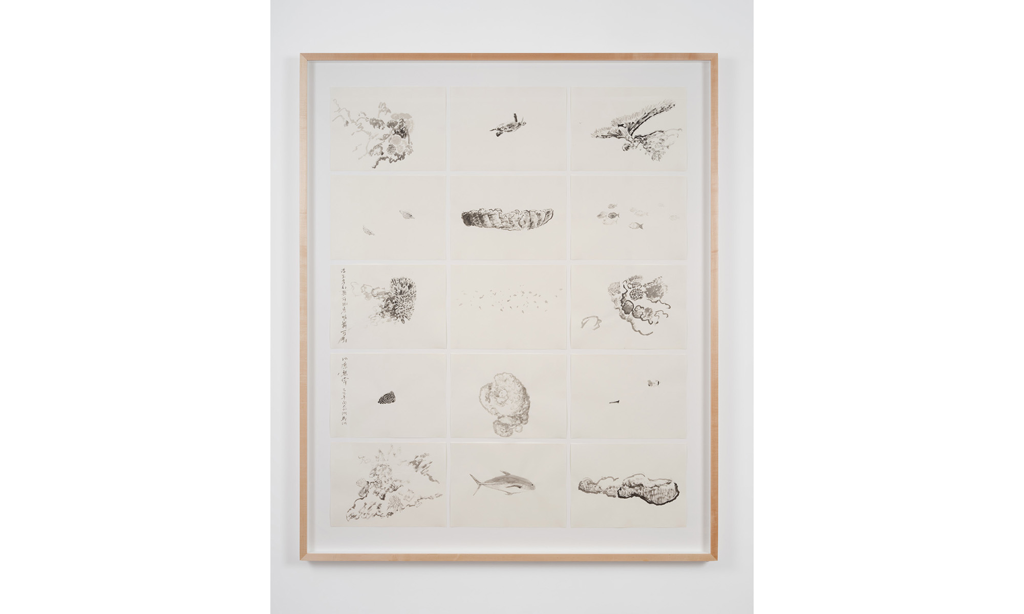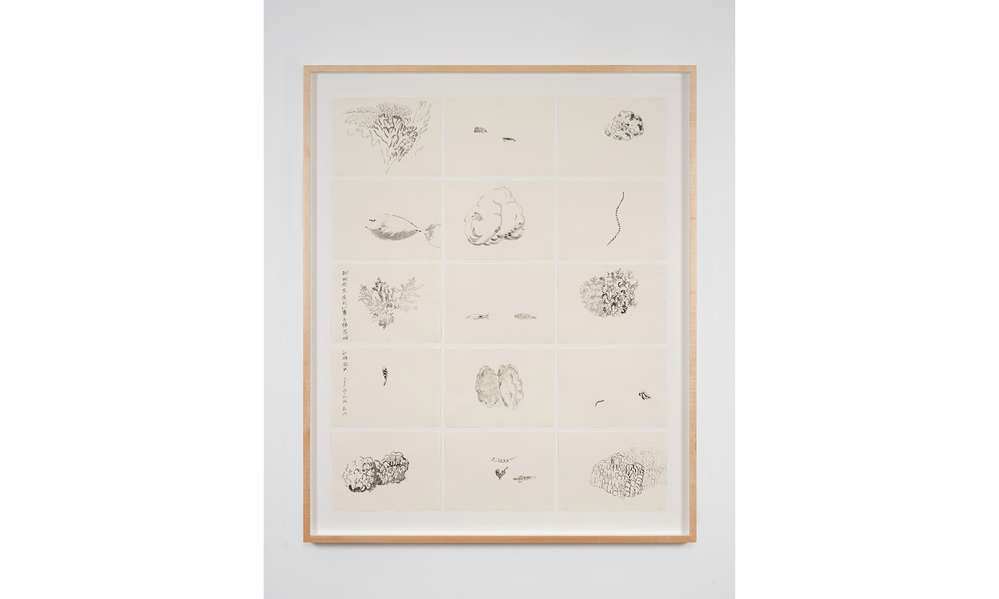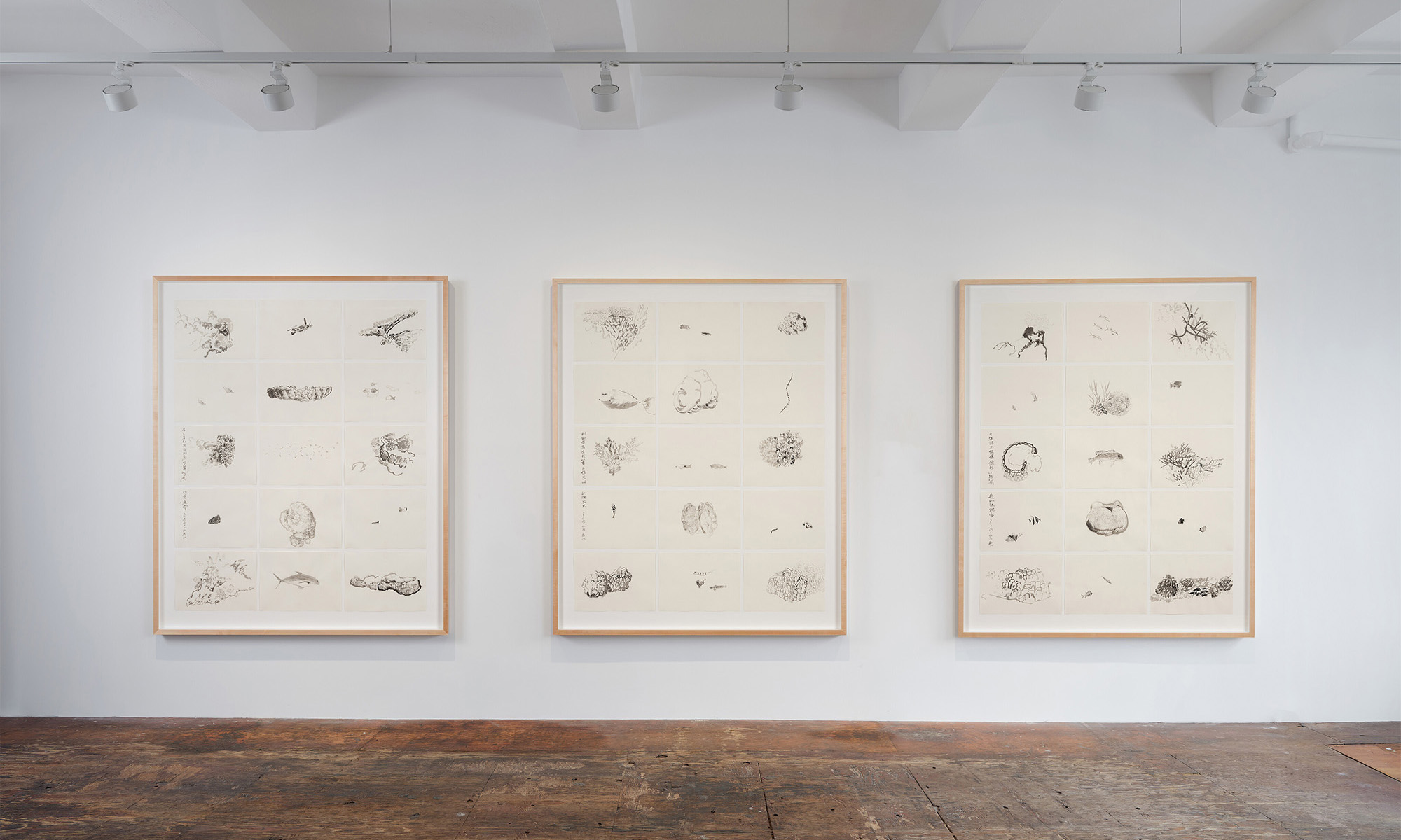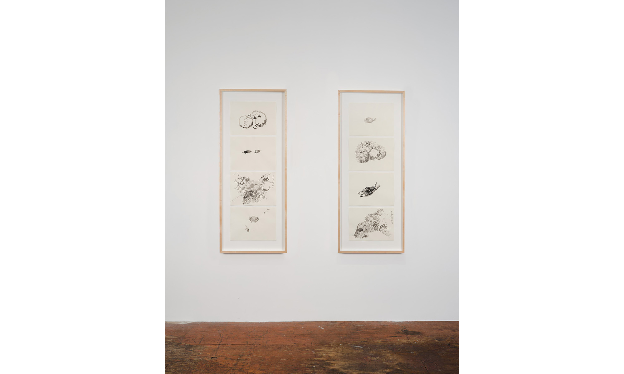 Mer de Corail, 2025. Ink on paper, 29.7 x 41cm each. Installation view at Kiang Malingue, New York.